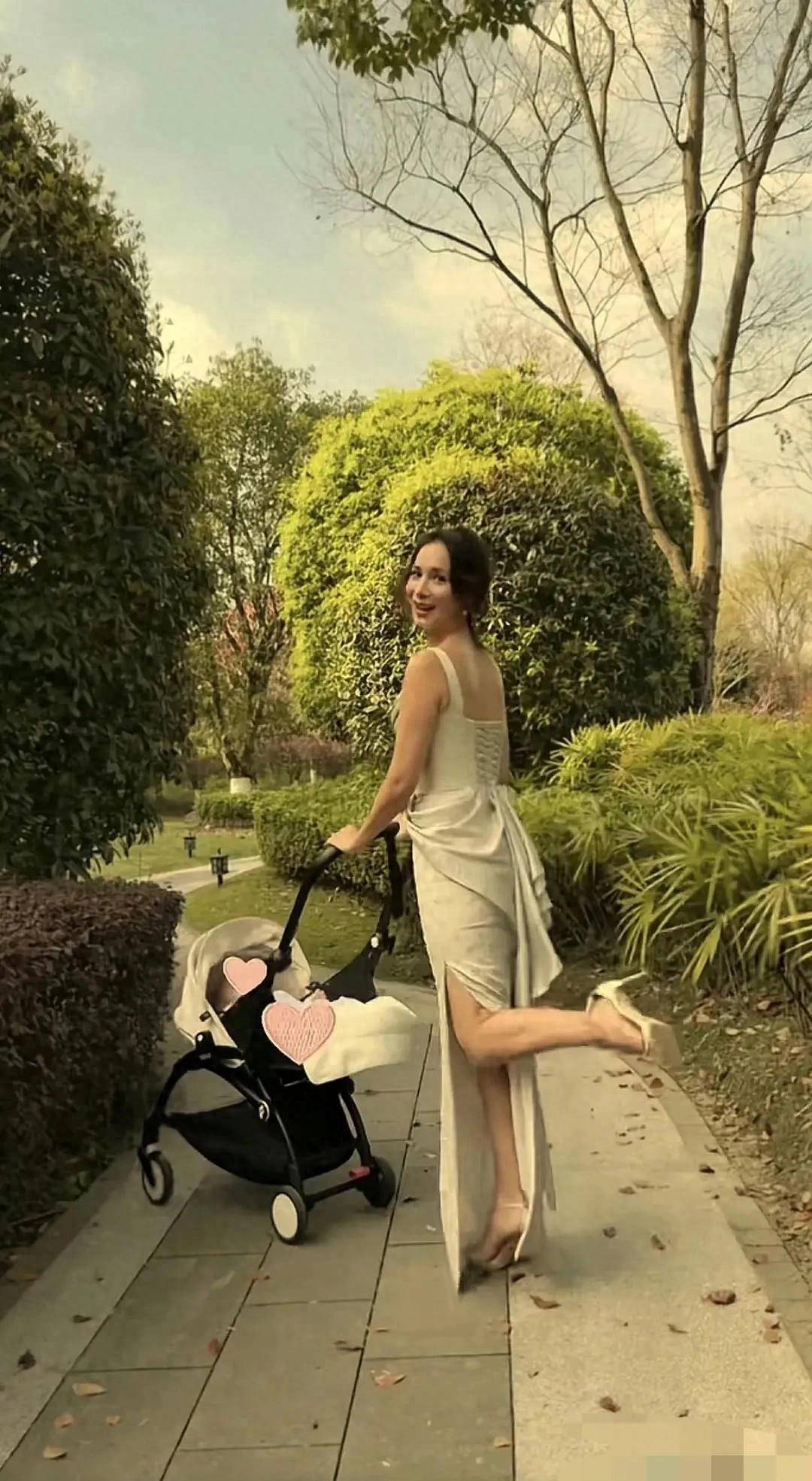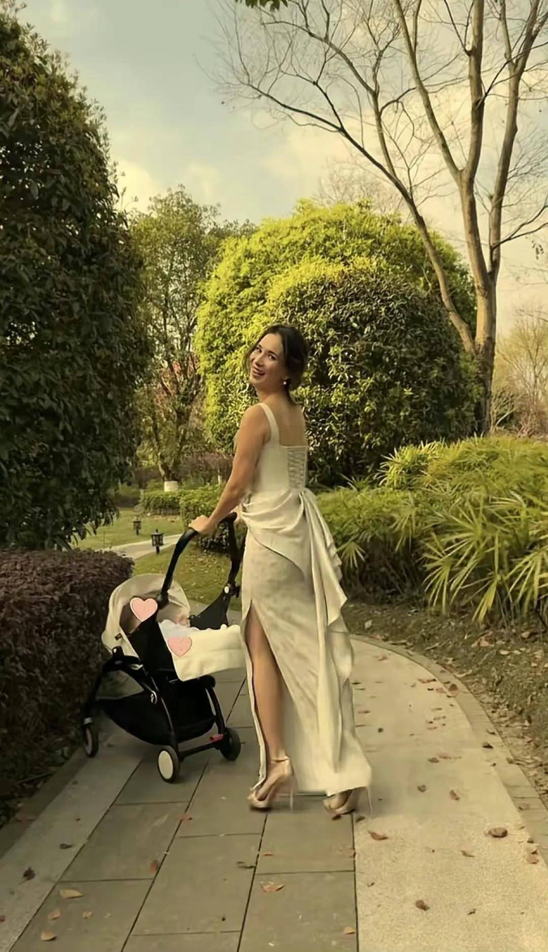 虽然打扮得光彩照人,但卢靖姗举手投足间尽显母爱温柔。小家伙在婴儿车里手舞足蹈,似乎对外面的世界充满好奇,而妈妈则笑意盈盈地注视着儿子,眼神中满是宠溺。这一幕温馨有爱,让人看了忍不住嘴角上扬。