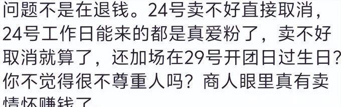 对于粉丝来说,他们投入的时间和金钱在公司的眼中似乎毫无价值。尽管他们有机会转移场次,但他们选择了强制退票,尽管他们可以承受部分损失,但他们选择了不赔任何一分。